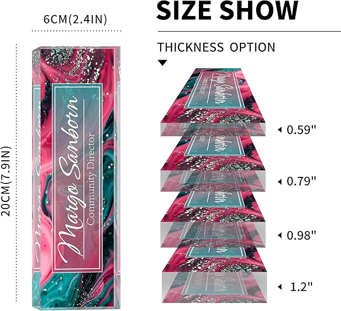 - 【High-Quality Acrylic Material】Our factory uses high-quality solid acrylic blocks to make name plates, and uses the latest high-definition UV printing machine to ensure that the content on the acrylic name plate is clear and not easily faded. So it will stand out on any desk, fully reflecting your professional ethics.