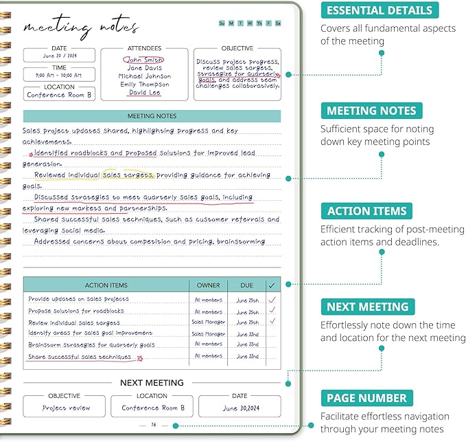 - Your Versatile Meeting Partner: Whether you’re an executive, project manager, team leader, or student, this daily work notebook adapts to your needs. It’s more than just a planner—it’s a powerful organizational tool designed to support productivity in meetings, planning, brainstorming, and beyond.