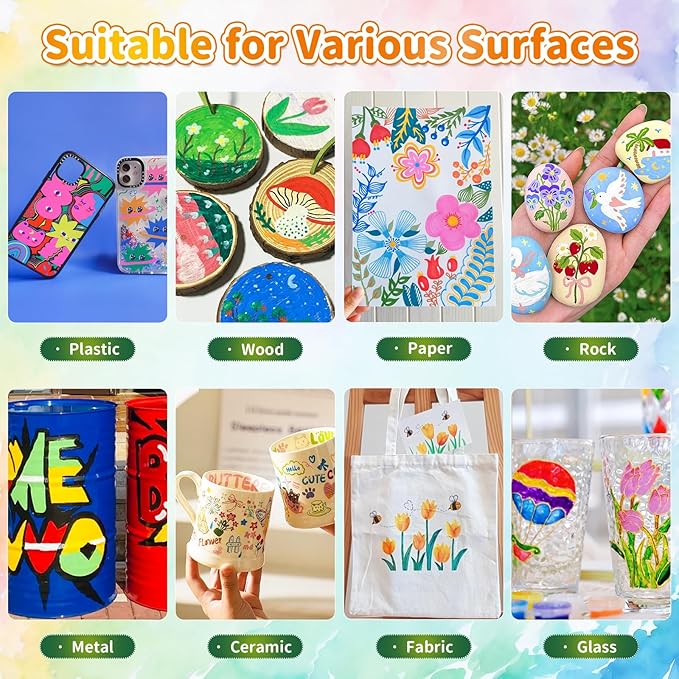 - Perfect Gift for Artists & Crafters: The glitter metallic marker pens are suitable for newcomers to play creative, Acrylic paint pens art supplies will be a personalized gift for your loved ones and painting rock lovers and create amazing art gifts for birthdays, Easter, Halloween, Christmas, Valentine's Day, Thanksgiving, New Year or special holiday gifts. design your own Christmas decorations, Halloween pumpkins, scrapbook supplies, wedding guest book, photo album or thank you card. High-quality felt tip pens make art interesting and easy. The included cards let you instantly craft personalized, hand-painted greeting cards for any occasion.