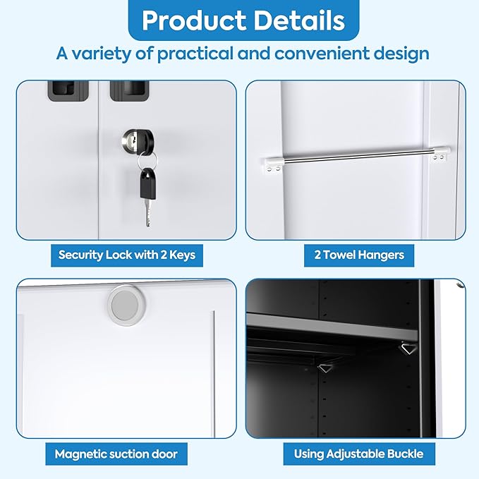 - [QUALITY MATERIAL] The metal storage cabinet is made of high-strength metal steel, each shelf has a load-carrying capacity of 120 pounds. The surface is powder electrostatic spraying, will not rust, it environmental protection, non-toxic, no smell.