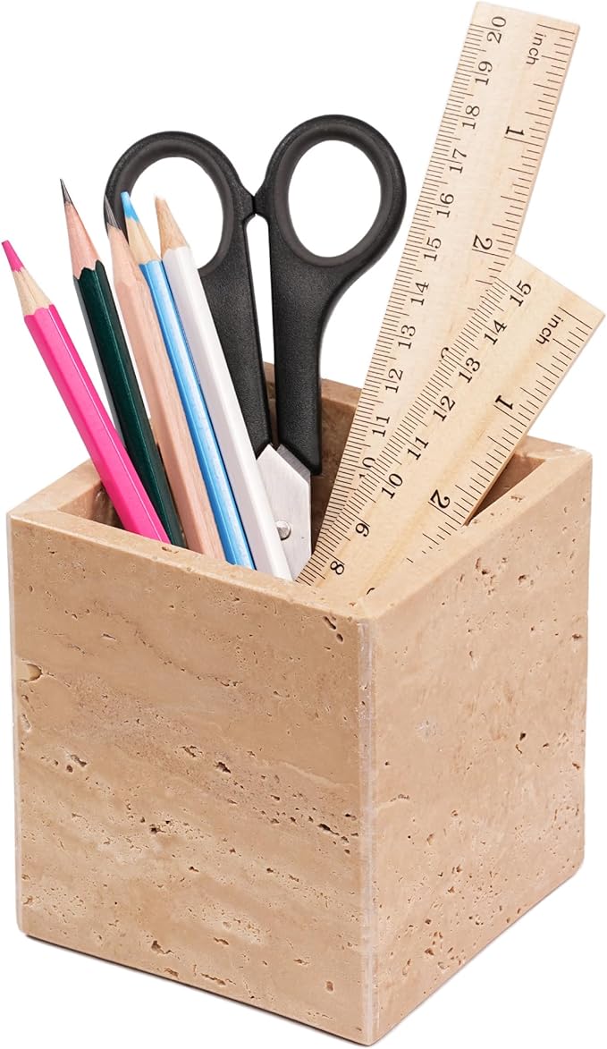 - This marble product is highly versatile. It can be used as a pen holder and also for storing makeup brushes.