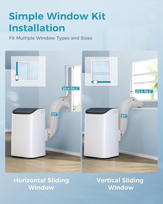 - ๐๐ก๐ ๐๐ฎ๐๐ซ๐๐ง๐ญ๐๐ ๐จ๐ ๐ ๐๐๐๐๐๐๐ฎ๐ฅ ๐๐ฅ๐๐๐ฉ: Experience better sleep with our portable air conditioner in Sleep mode, which can reduce fan speed to 46 dB. Our portable AC has a considerate feature to dim the control panel, let you enjoy peaceful rest. Also, this unit is packed with a 24H timer and an automatic swing function. This AC can gracefully powers down on the set time, maintaining the comfort while you sleep. ***This room air conditioner's window kit is NOT eligible for installation on the sides of windows between 20.5 inches and 30 inches. If your window falls within this range, you may need to carefully trim/cut the mounting kit to ensure proper installation