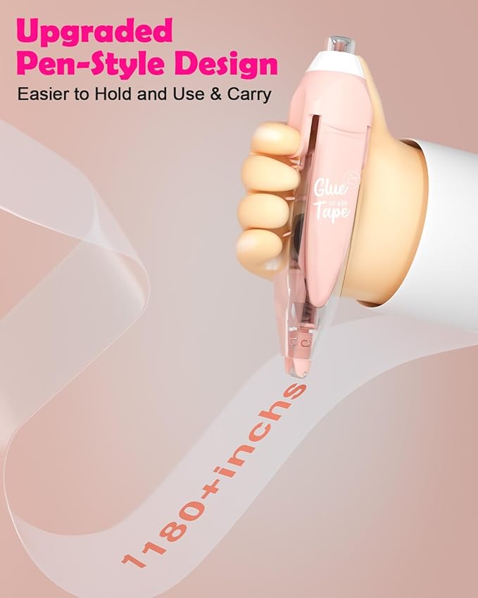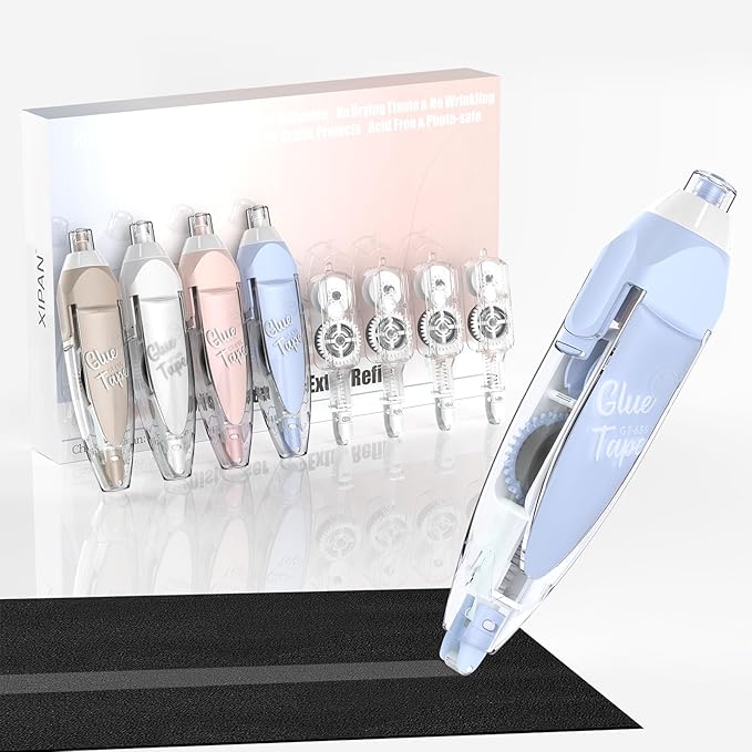 - Value Pack & Portable Design: Each set comes with 4 glue tape runners and 4 extra refills—nearly 1580 inches of strong double-sided adhesive. Compact and lightweight, perfect for scrapbooking, photos, crafts, and other art projects.