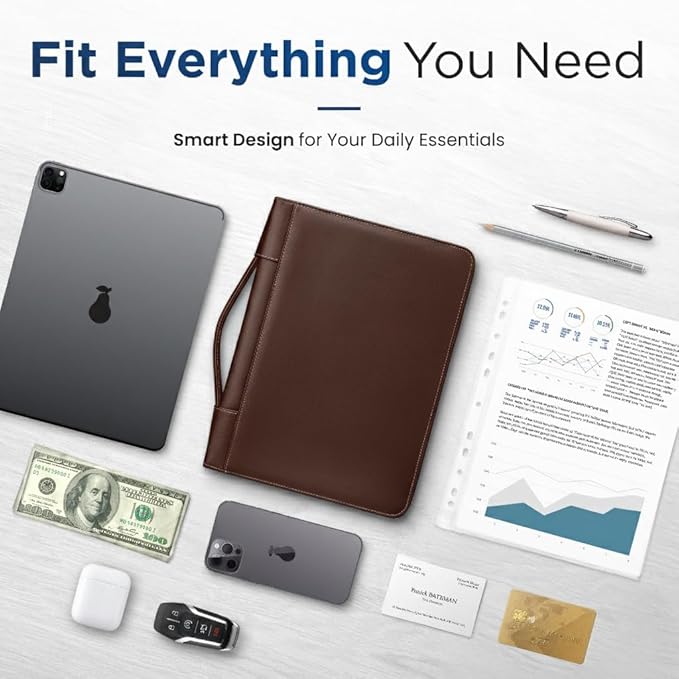 - ✅ SLEEK & PROFESSIONAL: Comes with a retractable carrying handle for convenient carry. The convenient dual zip design makes opening and closing the zipper binder 3 ring a real breeze. Includes business cards slots, a pen holder & a refillable writing pad. Fits most briefcases & bags.
