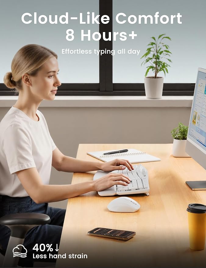 - Cloud-Like Comfort—Designed for Long Hours - Sink into our buttery-soft faux lambskin leather palm rest (waterproof & stain-resistant!) paired with ergonomic wave keys that hug your fingertips. Reduce wrist strain by 40%* and type 8+ hours fatigue-free.