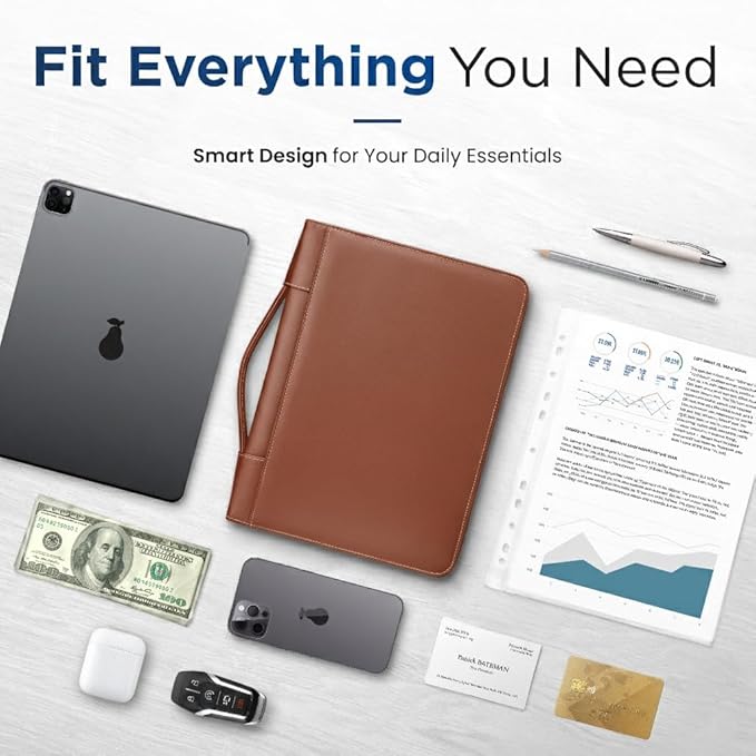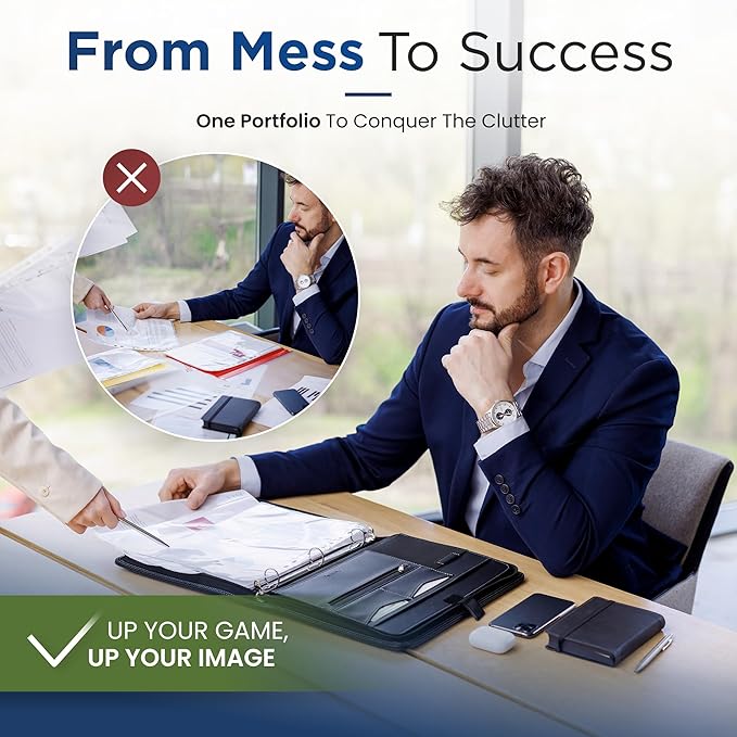 - ✅ SLEEK & PROFESSIONAL: Comes with a retractable carrying handle for convenient carry. The convenient dual zip design makes opening and closing the zipper binder 3 ring a real breeze. Includes business cards slots, a pen holder & a refillable writing pad. Fits most briefcases & bags.
