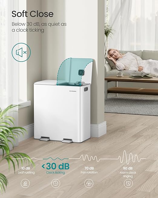 - Hands-Free, Silent, Fresh: The pedals allow for hands-free opening, while the soft-close lids ensure quiet use without loud clangs. The scent pods in the lids neutralize unpleasant odors