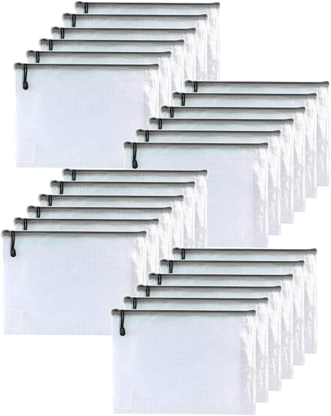 Oaimyy-24 Pcs Plastic Mesh Zipper Pouch Document Folders Bag Zip File Folders for School Office Supplies, Travel,Puzzles Games Organizing Storage-Black (Inches, 12"x 16")