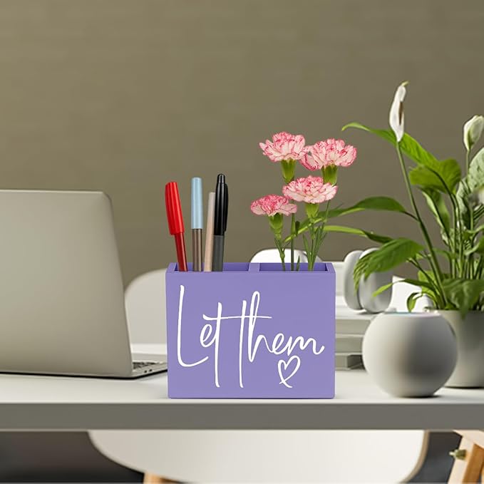 Purple Let Them Office Room Decor for Women Men HR Manager Coworker Friend Employee Wooden Pencil Holder Boss Day Gifts Funny Office Accessories Desk Decor