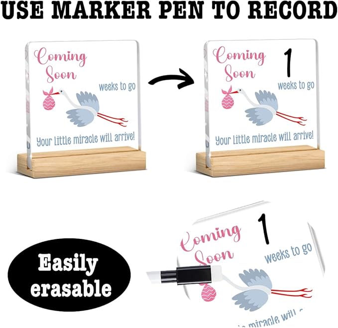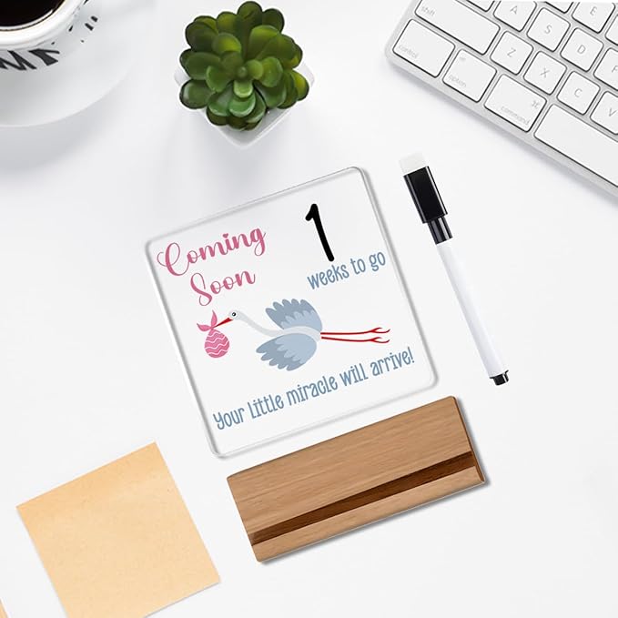 Baby Sonogram Sign,Baby countdown Announcement Gifts for Expecting Parents,Announcement New Mom Gender Gifts Wipeable Acrylic with Wood Stand 4 X 4 Inch
