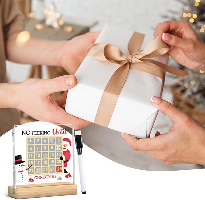 - 【Perfect Material】 Crafted with crystal-clear acrylic and a solid wood base, this durable plaque withstands daily use while maintaining its professional appearance. The Wipeable Acrylic surface erases cleanly without residue, allowing endless reuse for different occasions - from tracking project deadlines to counting down to holiday parties as funny christmas decorations.