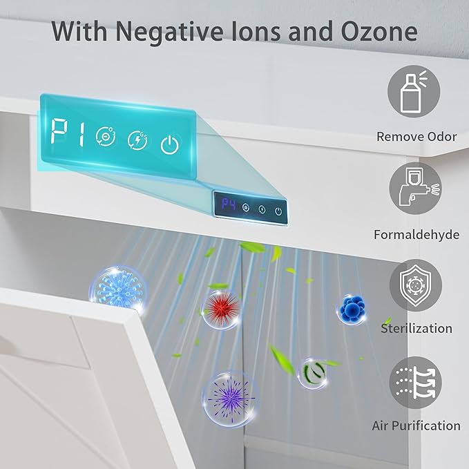 - 【Deodorization and Purification】VECELO cabinet trash can has negative ion and deodorizing functions that eliminate odors and harmful substances. Its unique deodorizing feature prevents odor diffusion. Ozone can break down formaldehyde into carbon dioxide and water, with a decomposition rate of up to 99%, ensuring the safety and cleanliness of your kitchen trash can cabinet and living environment.