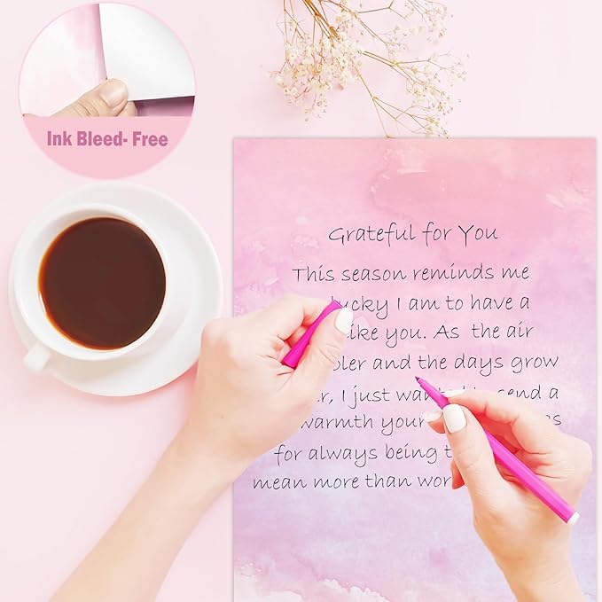 - Quality Material:Our watercolor letterhead is made of heavyweight,top-quality paper,and this watercolour stationery paper is noticeably thicker and more durable than most.The watercolor stationary supplies is not easy to break or fade.With full-color printed designs and a refined,flawless finish, this watercolor event stationery paper offers a smooth surface that prevents ink from bleeding through,providing you with a clean and comfortable writing experience