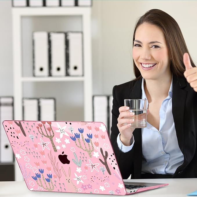 Teryeefi Case for MacBook Pro 13 inch A2338 M2 M1 Chip A2251 A2289 A2159 A1989 A1706 (2025 2024 2023 2022-2016), Clear Pink Hard Shell with Keyboard Cover Trackpad Film Type C Adapter,Cute Plants W125