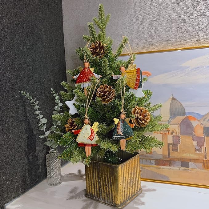 Christmas Ornaments Set for Xmas Tree 12-Pack Metal Dancing Angels Decor for Tin Hanging Christmas Decorations, for Christmas Tree Ornaments Decor, Party, Birthday, Christmas Décor