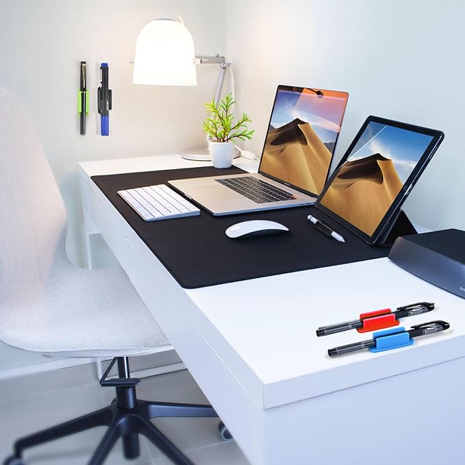 - Simple to Use: Each desk pen holder comes with a strong adhesive backing, in addition to that, we also provide 20 extra adhesive stickers for reuse, the strong backing allows you to securely stick the silicone pen holders to tables, bulletin boards, computer monitors, fridges, desktops, or any smooth surfaces without worrying that it will come off. Simply peel off the protective film from the adhesive backing and stick the pen holder to your desired surface.