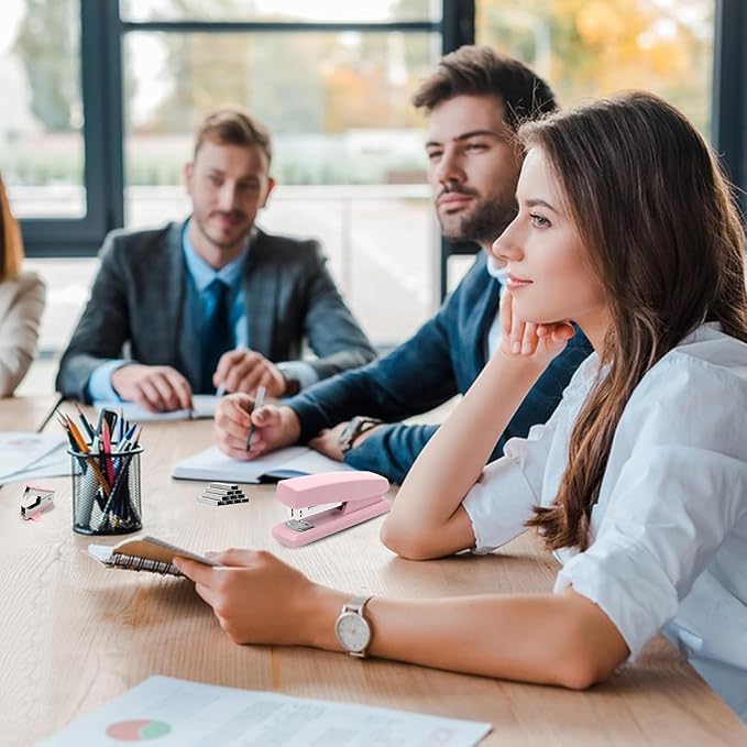 - 【NON-SLIP DESIGN】: This pink staplers for desk equipped with a non-slip base to ensure stability during use and prevent the stapler from sliping on the desktop.Provide high-quality binding, smooth and sturdy staplers can help you complete your work quickly.