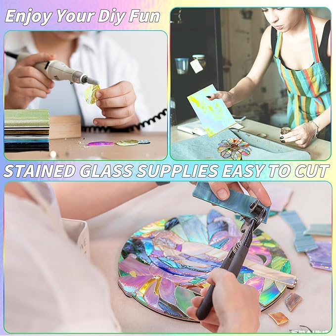 - Wide Applications: cut the cathedral glass into your own shape according to your needs, and then reassemble them, or paste the cut glass pieces on vases, table lamps, etc. to create unique creations for decorating your home; Add color to your life, the ideal project for mosaic lovers and beginners