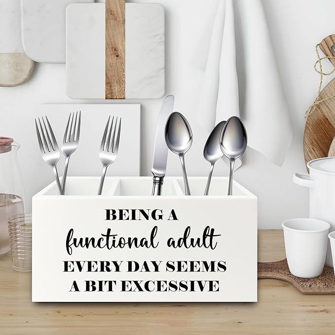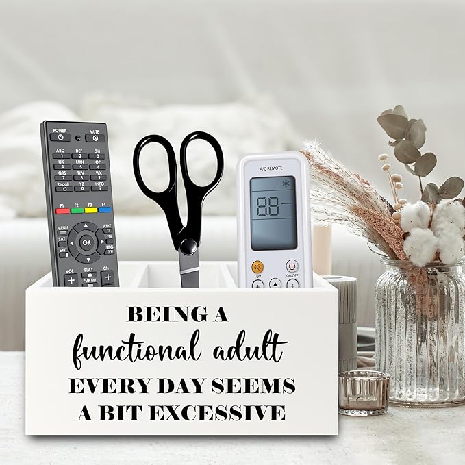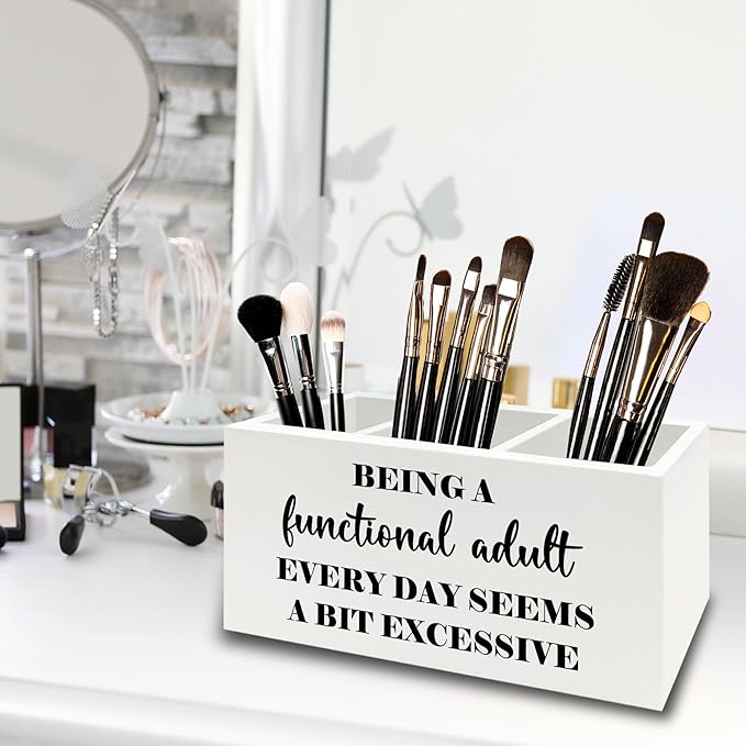 Funny Pen Pencil Holder Organizer for Desk, Sarcastic Gifts for Women Men Coworkers, Adult Humor Gifts, Being a Functional Adult Funny Wooden Box Sign for Home Office Desk Tabletop Decorations