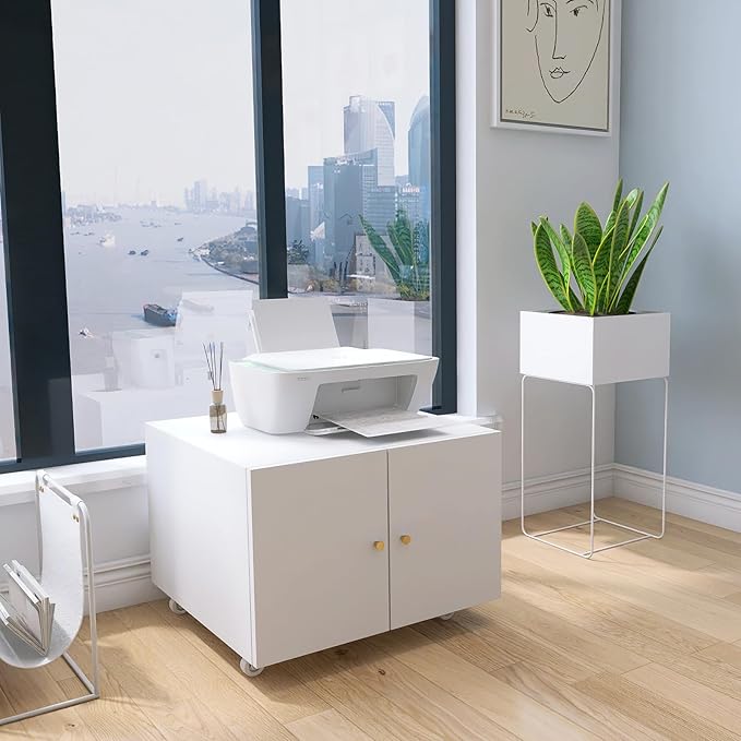 - [Modern appearance]: This printer stand with storage not only takes into account storage, but also adds fashion and style to the space. Modern design and sophisticated appearance make the office file cabinets a stylish addition to any office or home space, adding a sense of professionalism and class to the environment. It is available in black and white colors. Simple and elegant, easy to match the space.