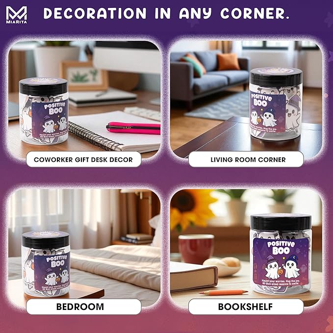 - ⨠ENCOURAGEMENT INSIDE ā Open the positive Ghosts jar to discover tiny treats of joy, not tricks. Perfect to put in a boo basket or spooky gift box.
