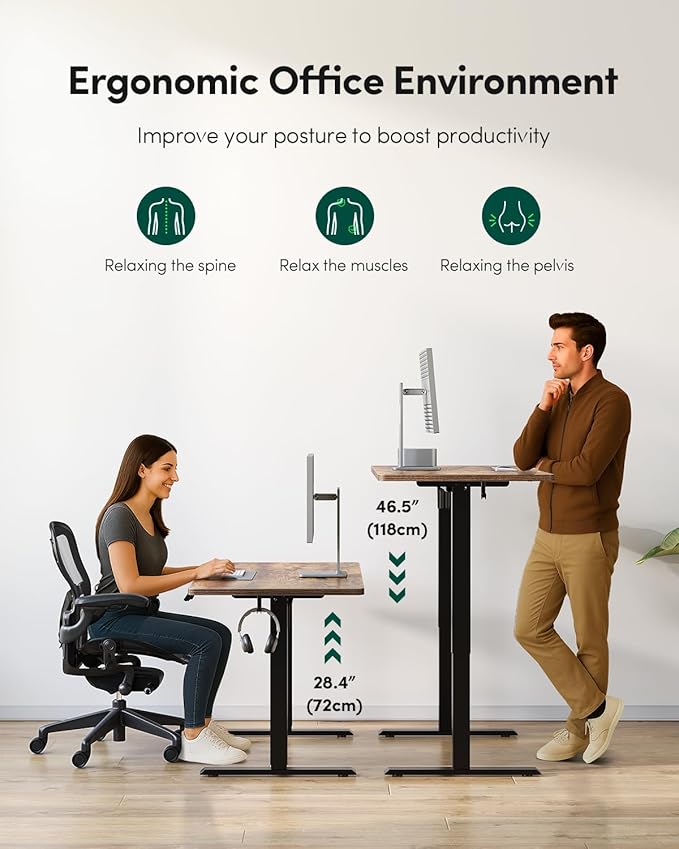- Smooth Height Adjustment: Engineered to accommodate a wide range of users, the Fezibo standing desk features advanced 2-stage lifting columns. The adjustable standing desk allows you to work at a comfortable height between 28.35″ and 46.46″ tall, making it easily find and switch to their perfect sit-to-stand positions with minimal effort.