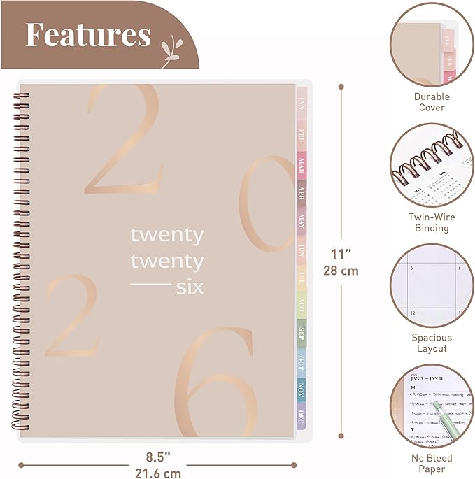 - STYLISH, PRACTICAL, AND VERSATILE: Available in 8Ă—6 and 8.5Ă—11 inches, this sleek agenda blends style and function. Ideal as a family or school organizer, this daily planner and monthly planner makes a thoughtful gift for teachers, students, or professionals ready to plan smarter all year long.