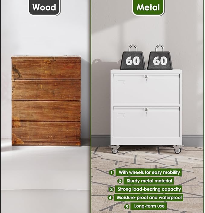 - [All-steel Stable-Rustproof] 2 drawer file cabinet with wheels has a reinforced steel frame with a corrosion and stain-resistant powder coat, Rugged and not easily deformed,which is ideal for long-term use.