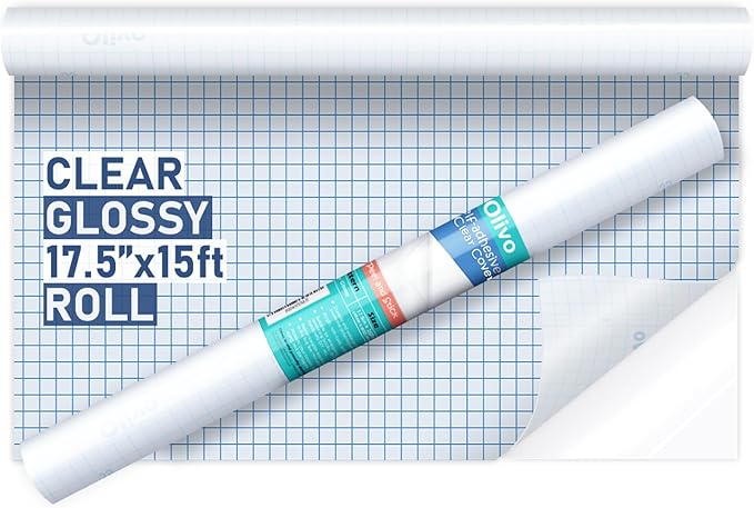 Olivo Clear Contact Paper Roll for Books Crafts 17.5 in x 15 ft Peel and Stick Adhesive Book Cover Plastic Protector