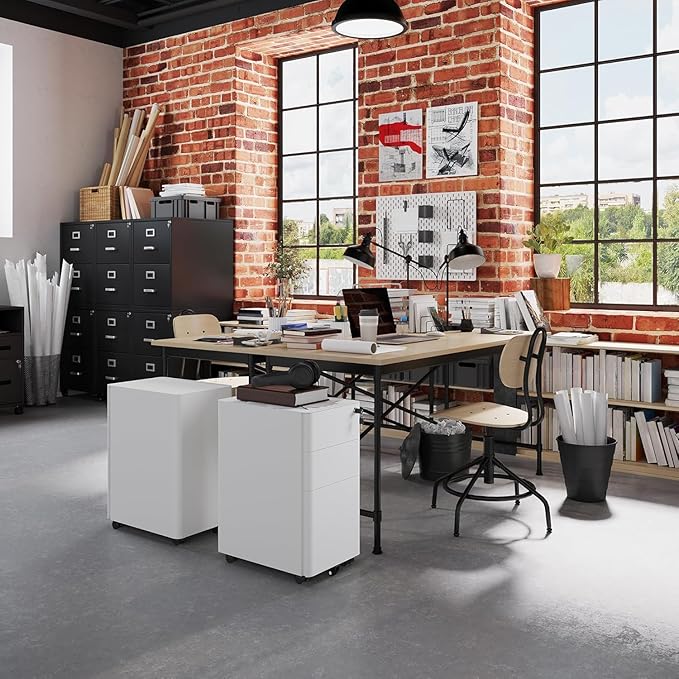 - Free-range Mobility with 5 Casters: This lockable filing cabinet has 4 x swivel casters (two of them are lockable) + 1x anti-tipping central caster; Easy and safe to move! 360°swivel casters provide great multi-directional mobility with little effort