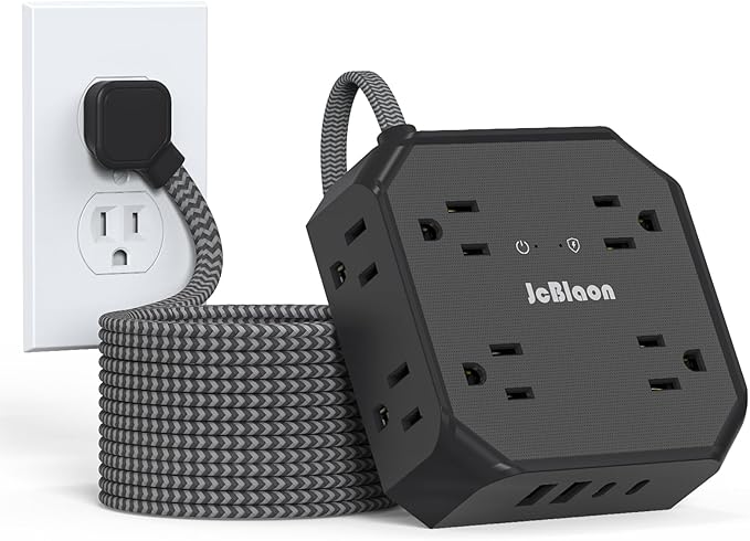 - 【Multi-Outlet Extension Cord】This 12-in-1 design allows you to charge up to 12 devices simultaneously. With 8 AC outlets and 4 independent USB plugs, it's perfect for charging multiple devices, including phones, laptops, and hair dryers. It's a must-have for college dorms, homes, offices, bedrooms, and kitchens.