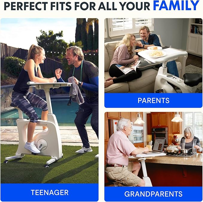 - ✅【Sturdy and Stable Table】Crafted from premium materials, our desk bike offers comfort and robust support. Our products have been thoroughly tested and specifically certified by TUV SUD. Hold up to 300lbs for the seat and 50lbs for the desktop