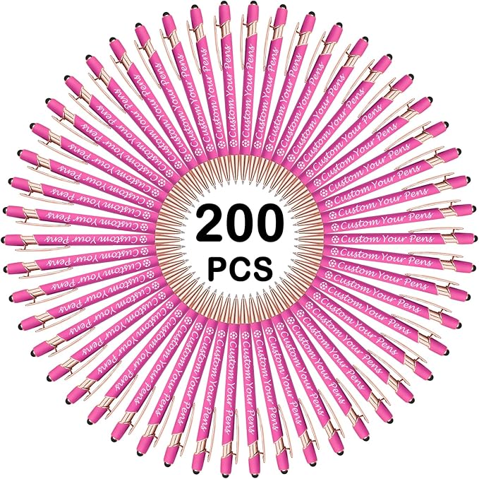 Amlion Personalized Custom Pens with Name Engraved Logo Text,200 Customized Writing Stylus Pen Promotional Item Gift for Men Women Office Business Wedding-Pink