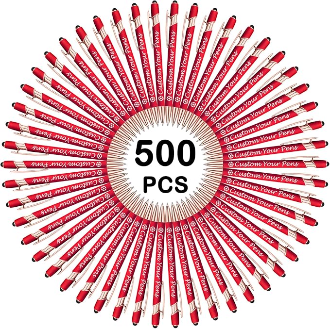 Amlion Personalized Custom Pens with Name Engraved Logo Text,500 Customized Writing Stylus Pen Promotional Item Gift for Men Women Office Business Wedding-Red