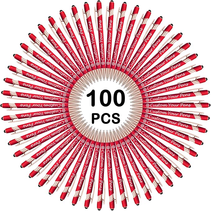 Amlion Personalized Custom Pens with Name Engraved Logo Text,100 Customized Writing Stylus Pen Promotional Item Gift for Men Women Office Business Wedding-Red