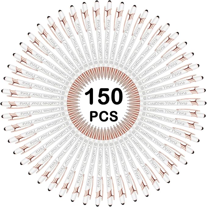Amlion Personalized Custom Pens with Name Engraved Logo Text,150 Customized Writing Stylus Pen Promotional Item Gift for Men Women Office Business Wedding-White