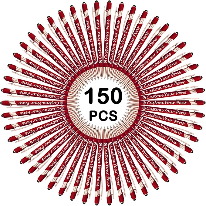 Amlion Personalized Custom Pens with Name Engraved Logo Text,150 Customized Writing Stylus Pen Promotional Item Gift for Men Women Office Business Wedding-Deep Red
