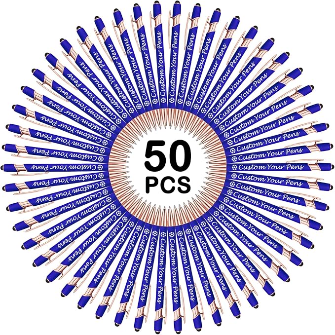 Amlion Personalized Custom Pens with Name Engraved Logo Text,50 Customized Writing Stylus Pen Promotional Item Gift for Men Women Office Business Wedding-Blue