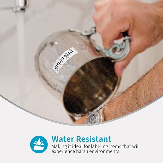 - [ Laminated White TZ Tape]: Replacement for p touch label maker tape durable and withstand water, sunlight, chemicals, heat and cold