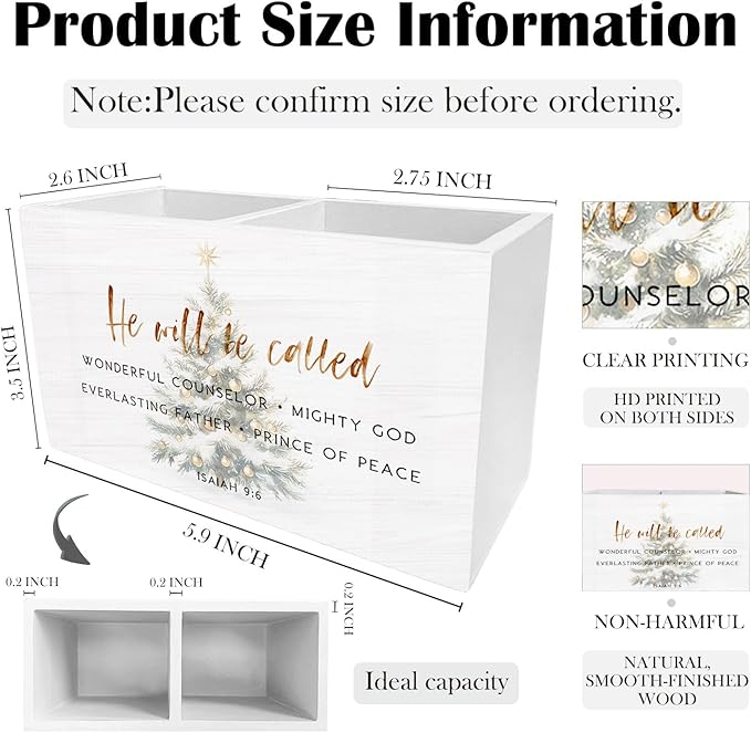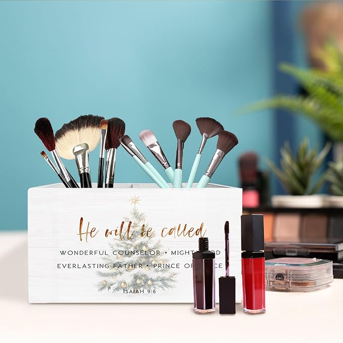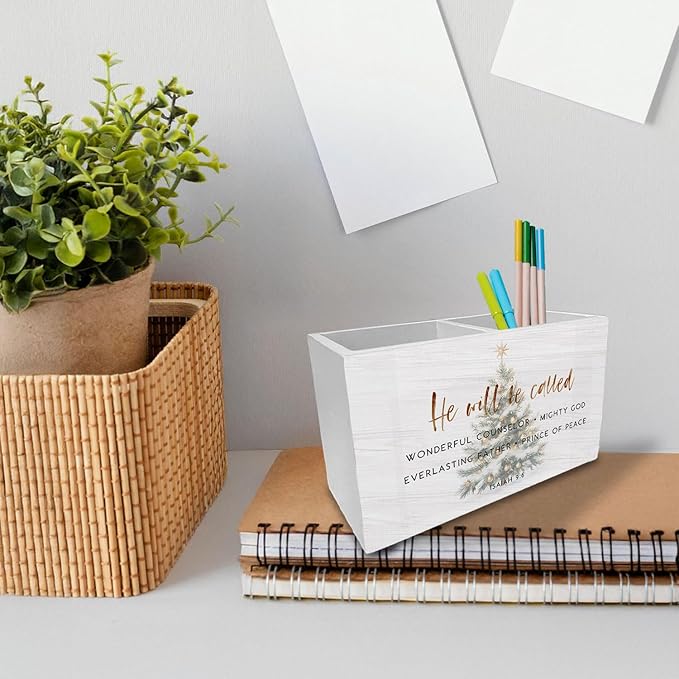 Christmas Tree Christian Pen Holder for Desk, He Will Be Called Bible Verse Wooden Box Sign Desk Decor for Home Office Decoration, Religious Pencil Organizer, Christian Christmas Decor