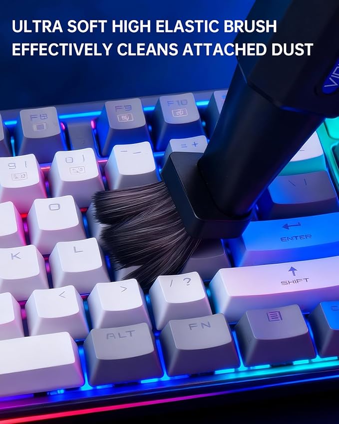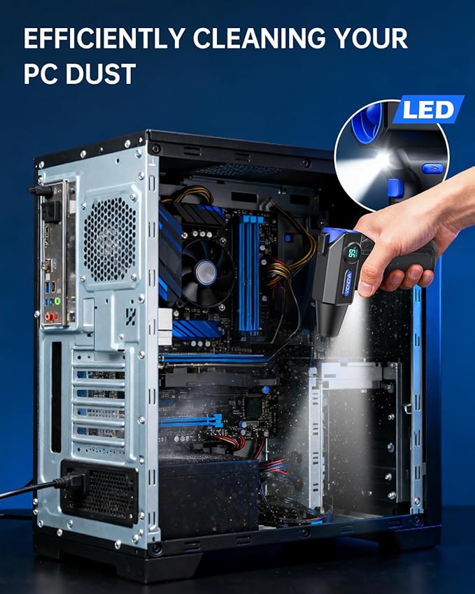- Air Duster with LED Light: The built-in LED light illuminates dark corners, ensuring hidden debris is thoroughly cleaned