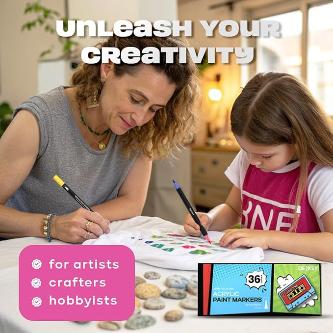 Acrylic paint pens create art β Dual Brush Tip Acrylic Markers Set, Waterproof Quick-Drying Ink for Rock Painting, Glass, Wood, Fabric (36)