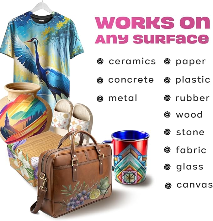 - π§ Water-Based Acrylic Ink for All Surfaces β These waterproof, quick-drying acrylic paint pens deliver consistent, opaque color on virtually any surface including paper, canvas, rock, wood, glass, metal, ceramics, plastic, and fabric. No smudging, no fading β just long-lasting results.