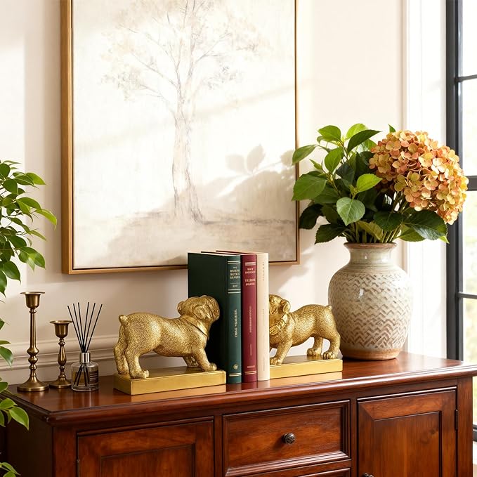 - Versatile Home Decor - Perfect for bookshelves, consoles, offices, or study spaces. The gold bulldog statues bring both modern luxury and playful character to your home décor.