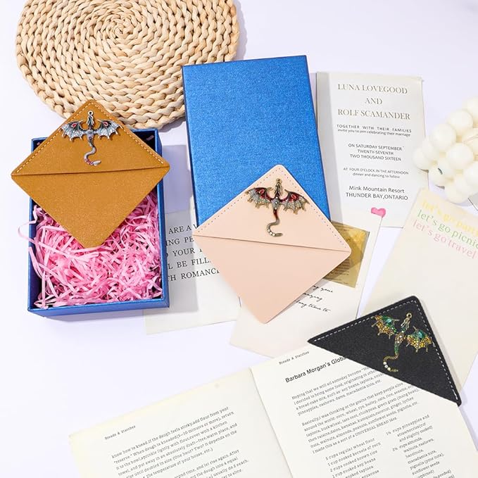 - DESIGN CONCEPT: This dragon-shaped leather bookmark features a shiny, gradient-colored metal enamel dragon pendant, immersing you in an adventurous journey of summoning a dragon as you flip through the pages of your book. Made from soft, high-quality leather in an extra-large size, it effectively protects your pages while staying securely in place, combining both aesthetic appeal and practical functionality