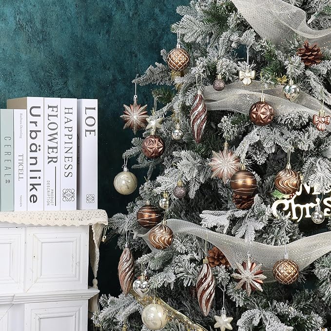 - PREMIUM MATERIAL: These christmas decorations are made of shatterproof premium plastics. Even for families with children and pets, you can use this set of brown gold christmas ball ornaments without worrying about accidental damage, bringing peace of mind to your christmas