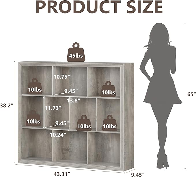 - 【VERSATILE USAGE】This wooden cube storage organizer fits seamlessly in any room in your home or office. Use it to organize books, toys, office supplies, and more. It also doubles as a bookshelf or media stand, with enough space to hold TVs up to 55 inches wide. Overall Dimensions: 43.31" x 9.45" x 38.20"