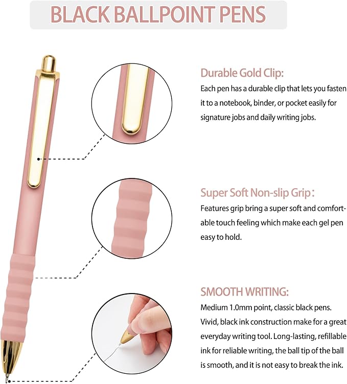 Linbsunne Ballpoint Pens Black Medium Point 1mm Pen with Super Soft Grip Ball Point Pen for Men Women Retractable Pens (Style2, 12-Count)