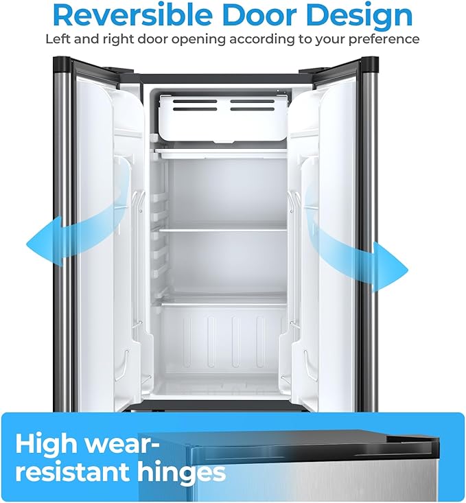 Antarctic Star 3.2 Cu.Ft. Mini Fridge with Freezer, Small Refrigerators with Adjustable Thermostat, Low Noise, Energy Saving, Compact Refrigerators for College Dorm, Office, Apartment, Stainless Steel