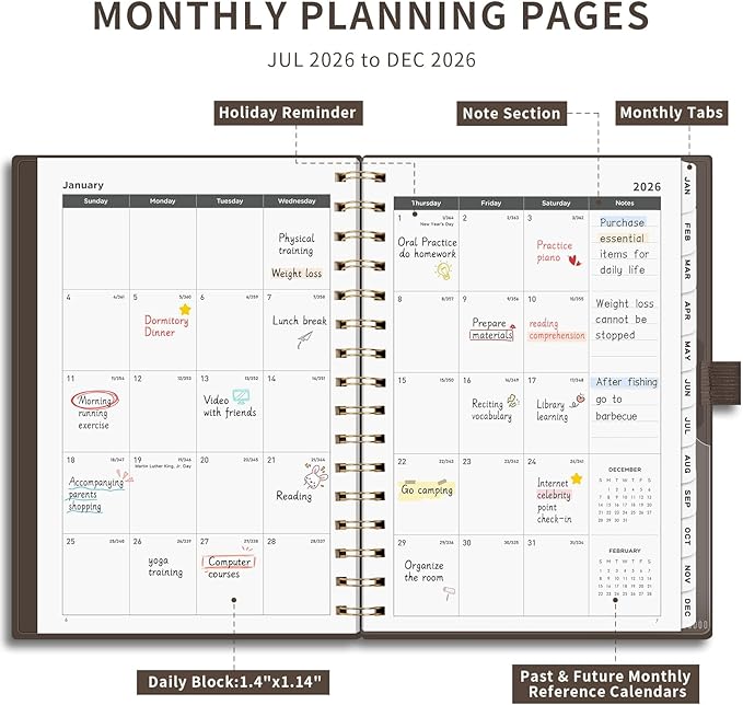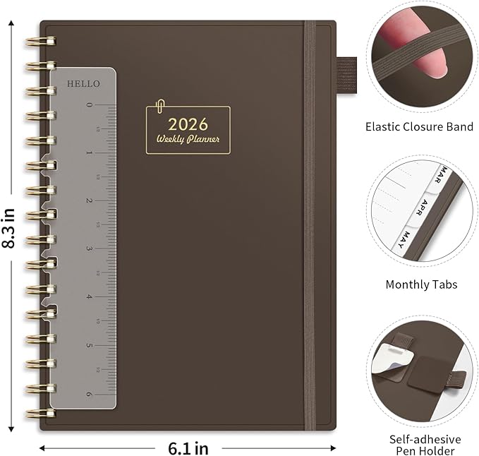 AHGXG 2026 Planner, Weekly and Monthly, Jan 2026 - Dec 2026, 12 Months, 2026 Calendar Planner Book with Tabs for Men Women School Home Office Supplies, A5 (6" X 8.38"), Coffee